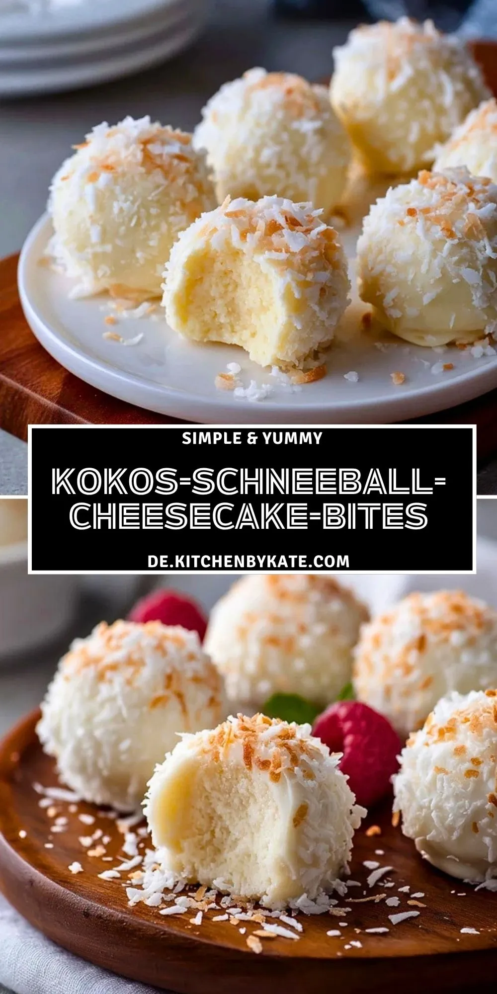 Keywords: Kokos-Schneeball-Cheesecake-Bites, Kokos Dessert, No-Bake Cheesecake, Mini Dessert, Cheesecake Bites