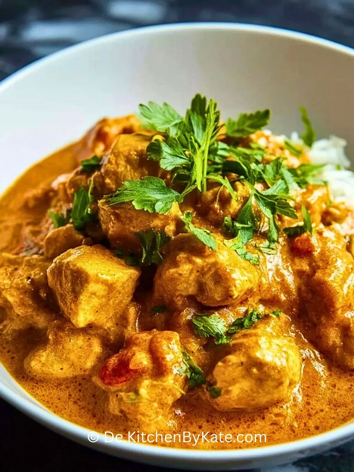 Mit Basmatireis, Jasminreis oder Naan servieren – ideal zum Auftunken der cremigen Soße.