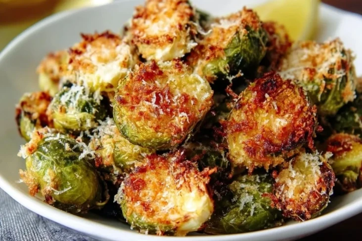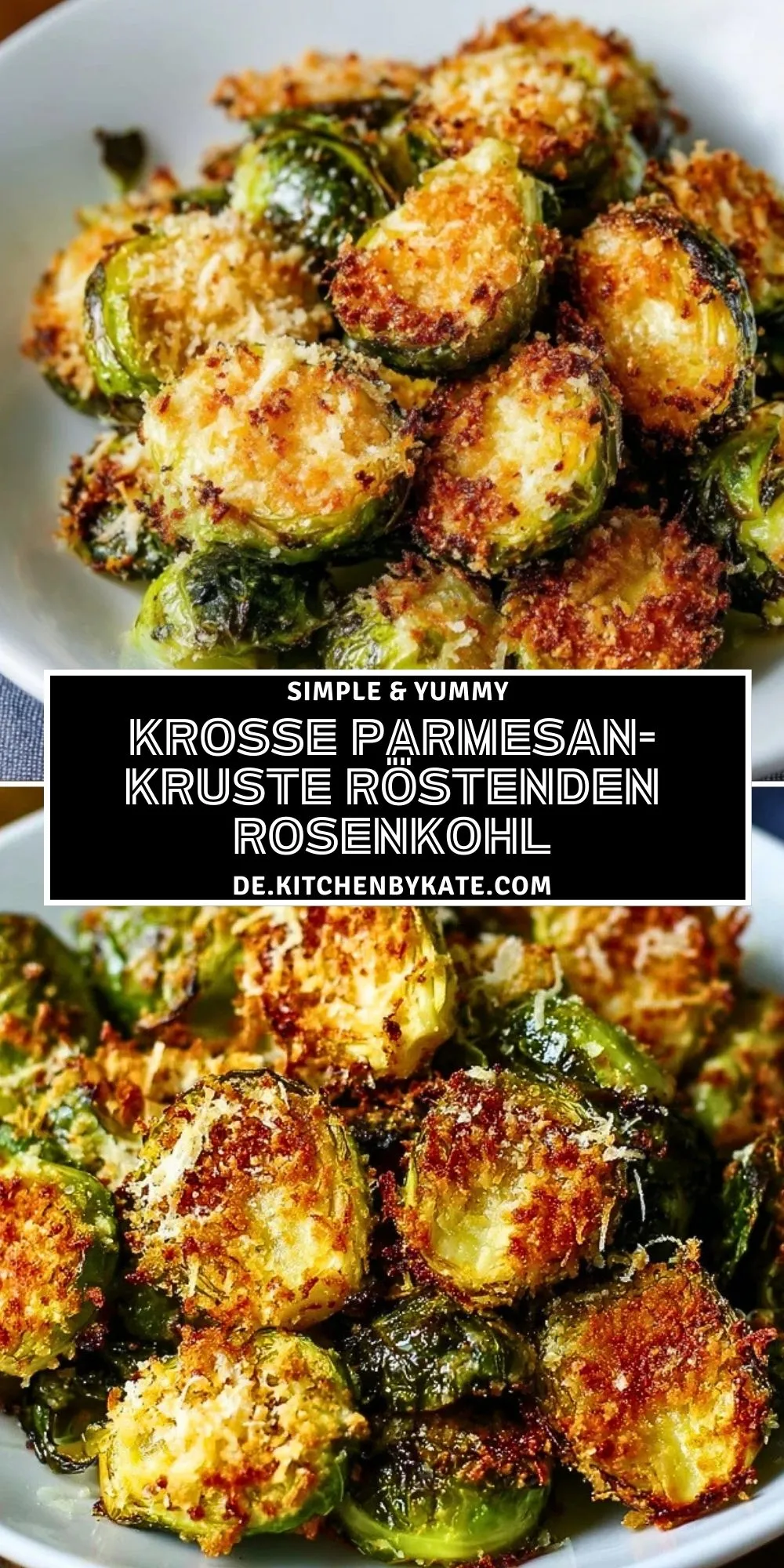 Kross gerösteter Rosenkohl mit goldbrauner Parmesan-Kruste – außen knusprig, innen zart. Eine köstliche Beilage, die durch ihre würzige Kruste und einen Spritzer Zitrone begeistert. Perfekt als Beilage zum Festessen oder als Star auf dem Gemüsebuffet.