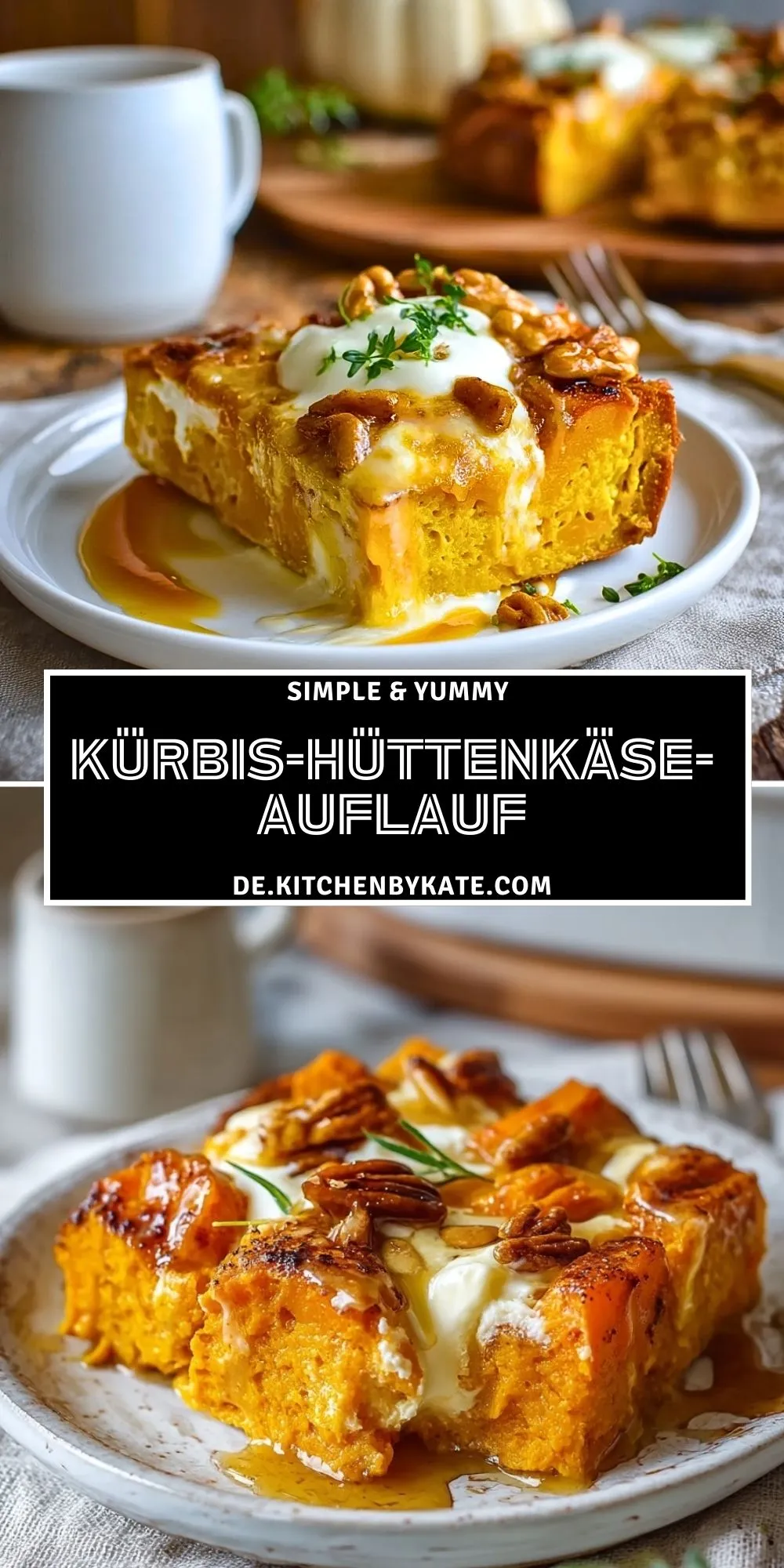 Dieser Kürbis-Hüttenkäse-Auflauf ist ein herzhaftes Wohlfühlgericht für kühle Tage. Die natürliche Süße des Kürbisses verbindet sich harmonisch mit der milden Frische des Hüttenkäses und ergibt eine cremige, aber dennoch leichte Konsistenz. Perfekt als vegetarisches Hauptgericht oder als sättigende Beilage.