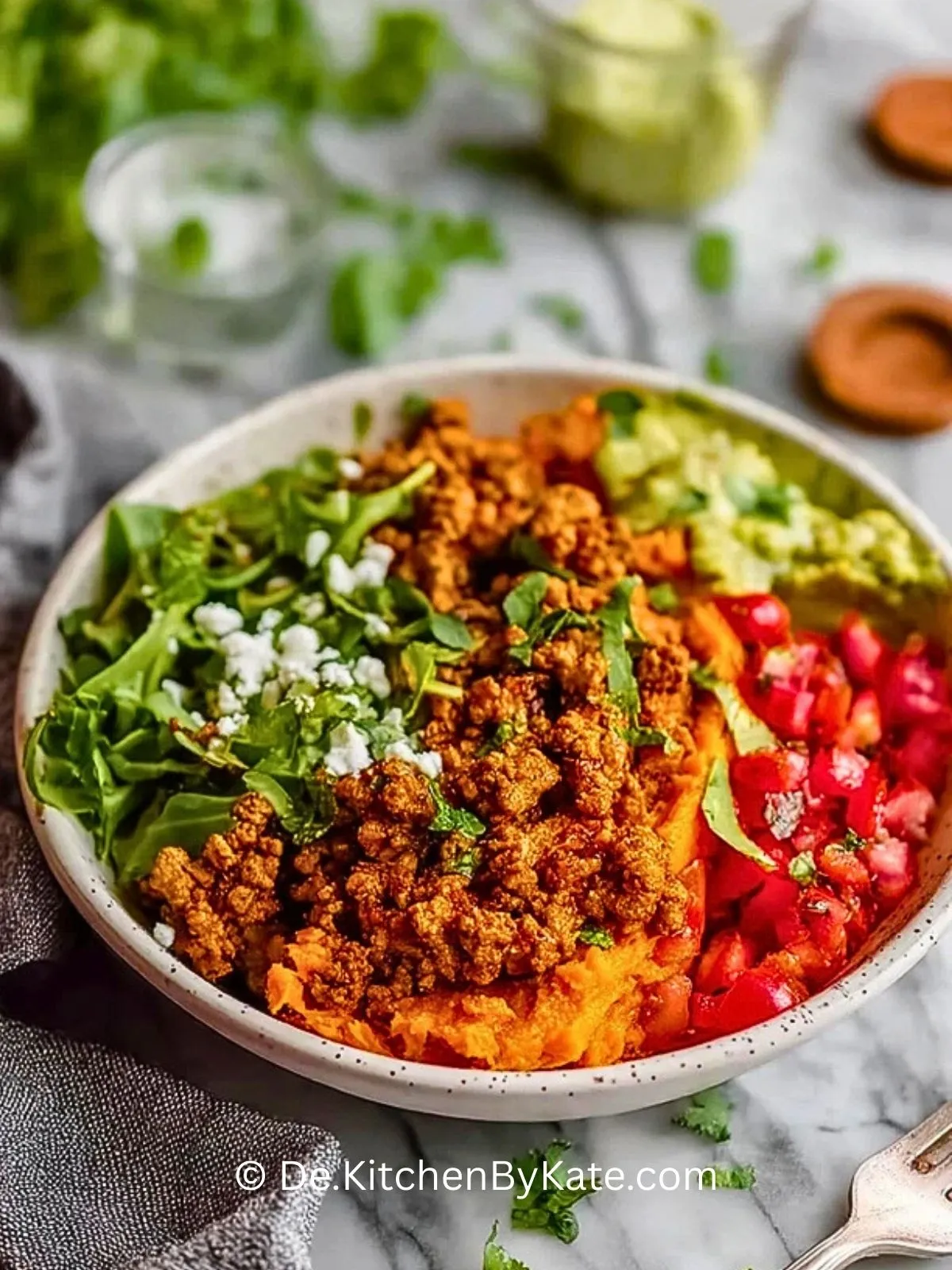 So bereitest du Leckere Süßkartoffel-Bowl mit Putenhackfleisch zu