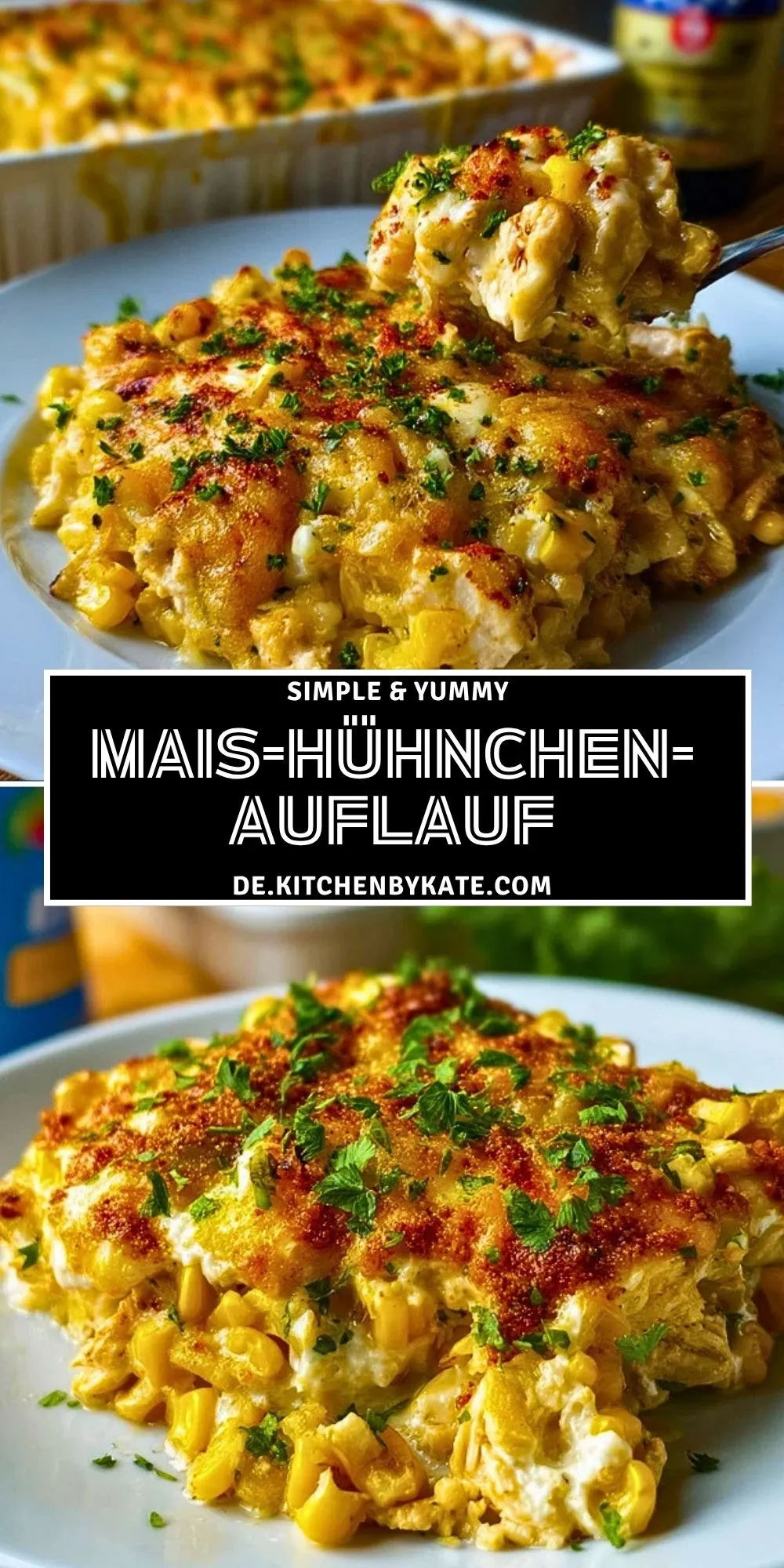 Keywords: Mais-Hühnchen-Auflauf, Hähnchenauflauf, Maisauflauf, cremiger Auflauf, Ofengericht