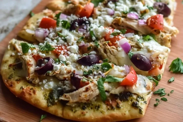 Diese Mediterrane Hähnchen-Fladenbrot-Pizza ist schnell gemacht, wunderbar knusprig und voller frischer Aromen. Saftiges Hähnchen, geschmolzener Mozzarella, würziger Feta, Tomaten, Oliven und rote Zwiebeln verwandeln einfaches Fladenbrot in eine unkomplizierte, mediterran inspirierte Mahlzeit für jeden Tag.