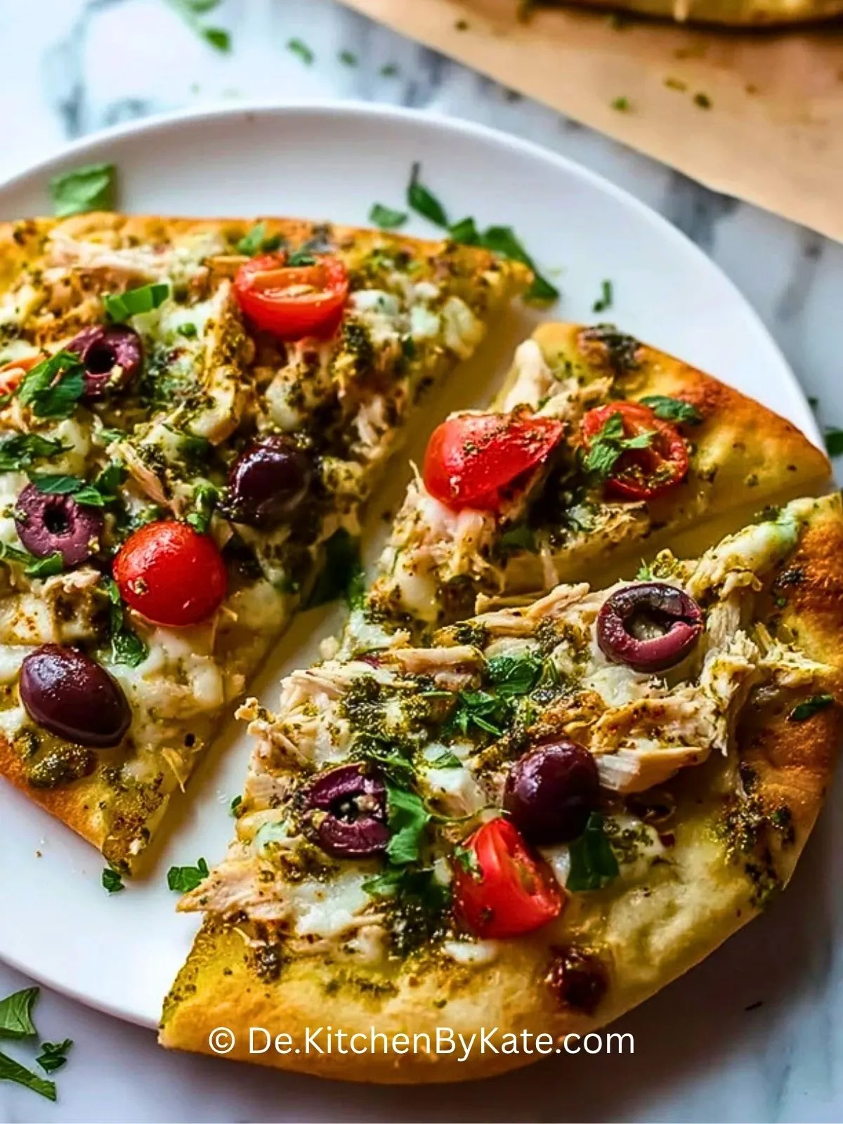 So bereitest du Mediterrane Hähnchen-Fladenbrot-Pizza zu