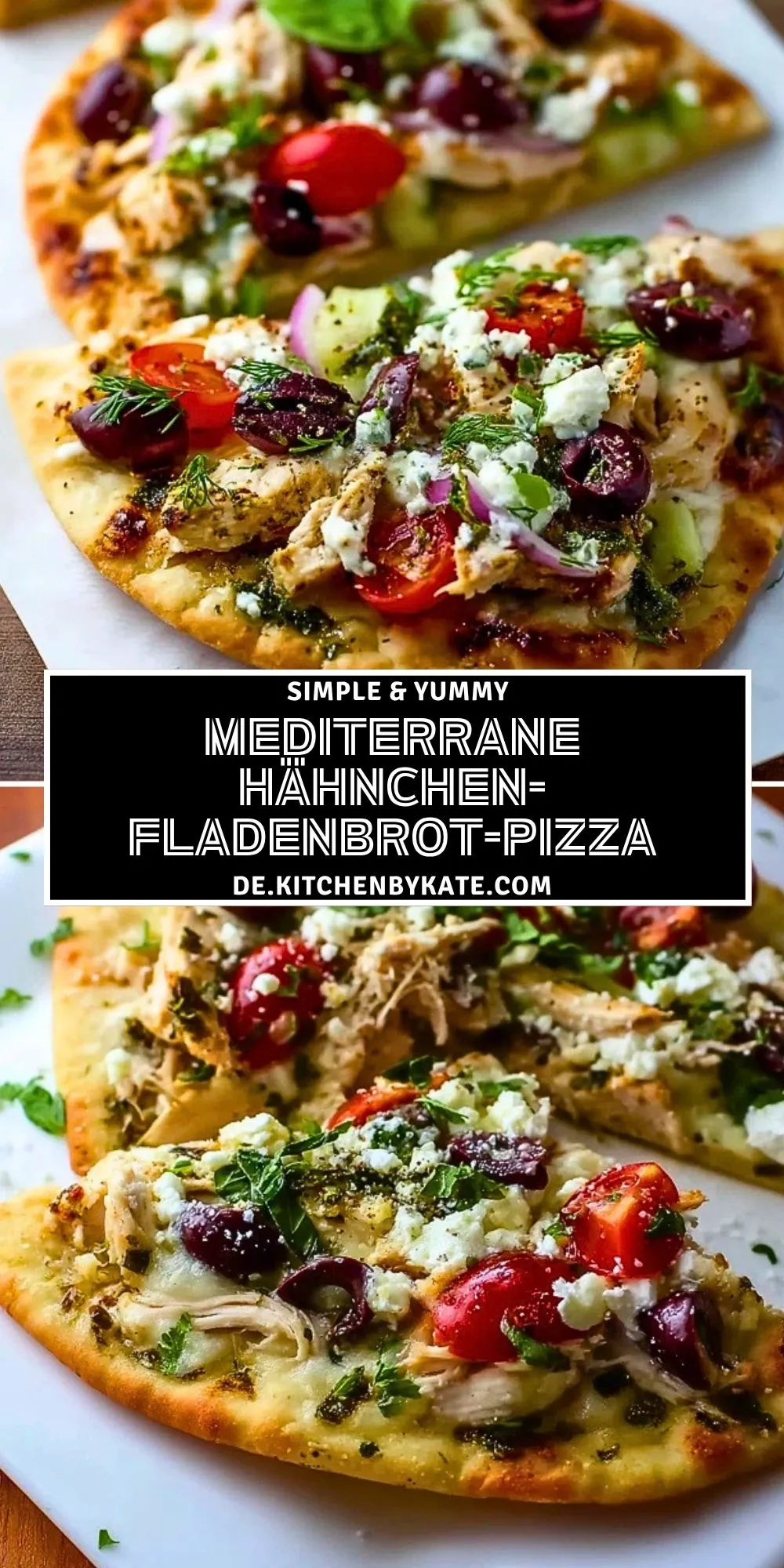 Keywords: Mediterrane Hähnchen-Fladenbrot-Pizza, Fladenbrot Pizza, Hähnchen Pizza, mediterrane Pizza, schnelles Abendessen