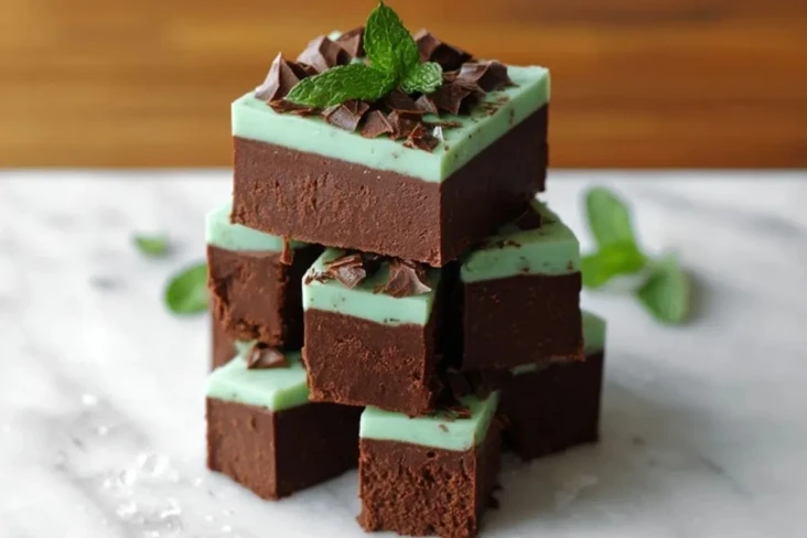 Ein Traum für alle Schokoladen- und Minzliebhaber: Minzschokoladenfudge vereint die zartschmelzende Textur von Fudge mit einer frischen Minznote und intensivem Schokoladengeschmack. Die hübsche grüne Minzschicht macht diese Fudge-Würfel zu einem echten Hingucker auf jeder Kaffeetafel, ob als Dessert, zum Verschenken oder als süßer Snack zwischendurch.