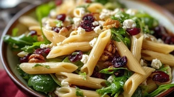 Gesunder Penne-Salat mit Feta, Cranberries und Orangen-Vinaigrette