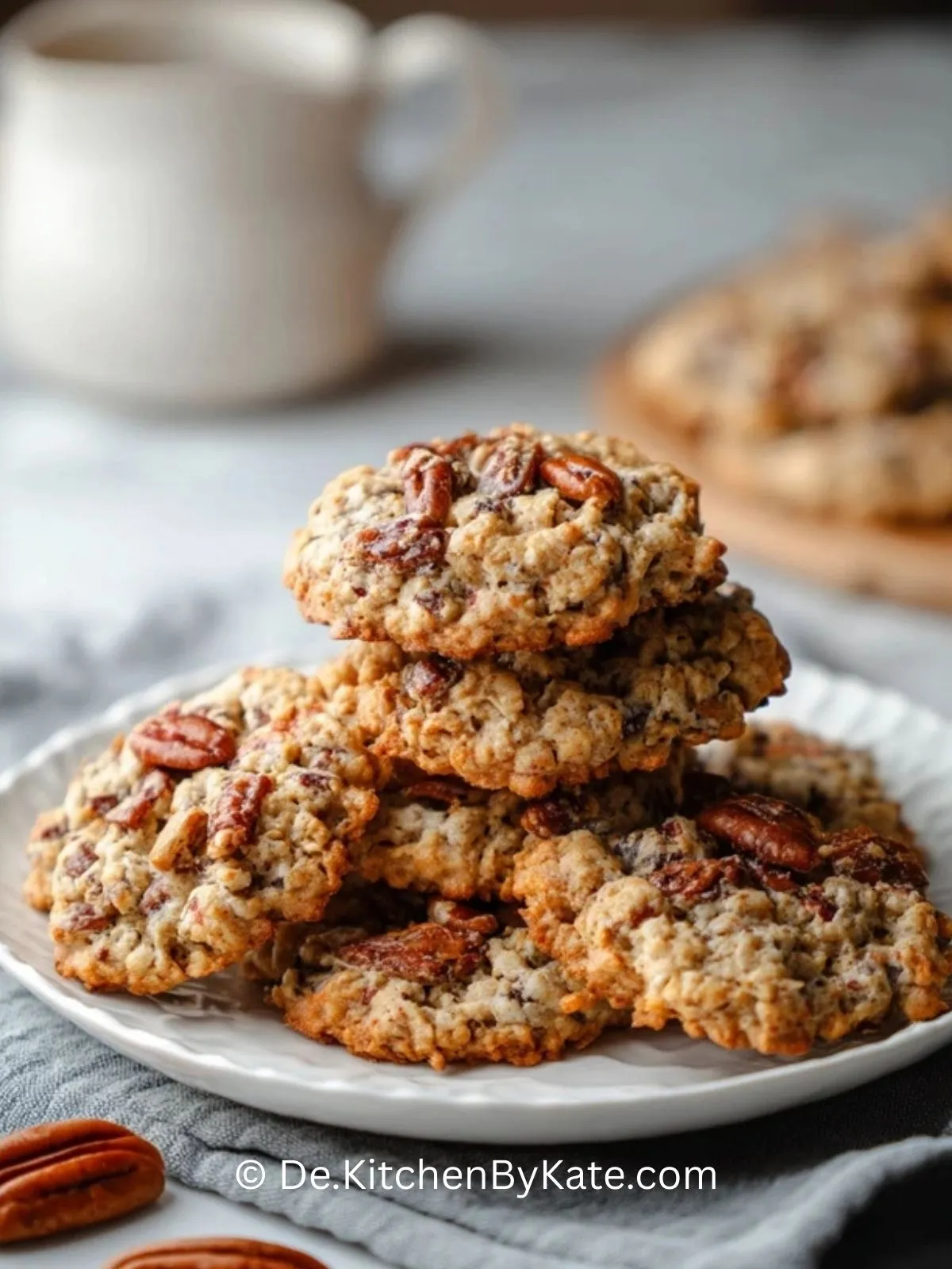Diese Pekannuss Haferkekse sind außen goldbraun und knusprig, innen weich und leicht zäh, vollgepackt mit gerösteten Pekannüssen, Haferflocken und einem Hauch Zimt – perfekt zum Kaffee oder als kleiner Snack zwischendurch.