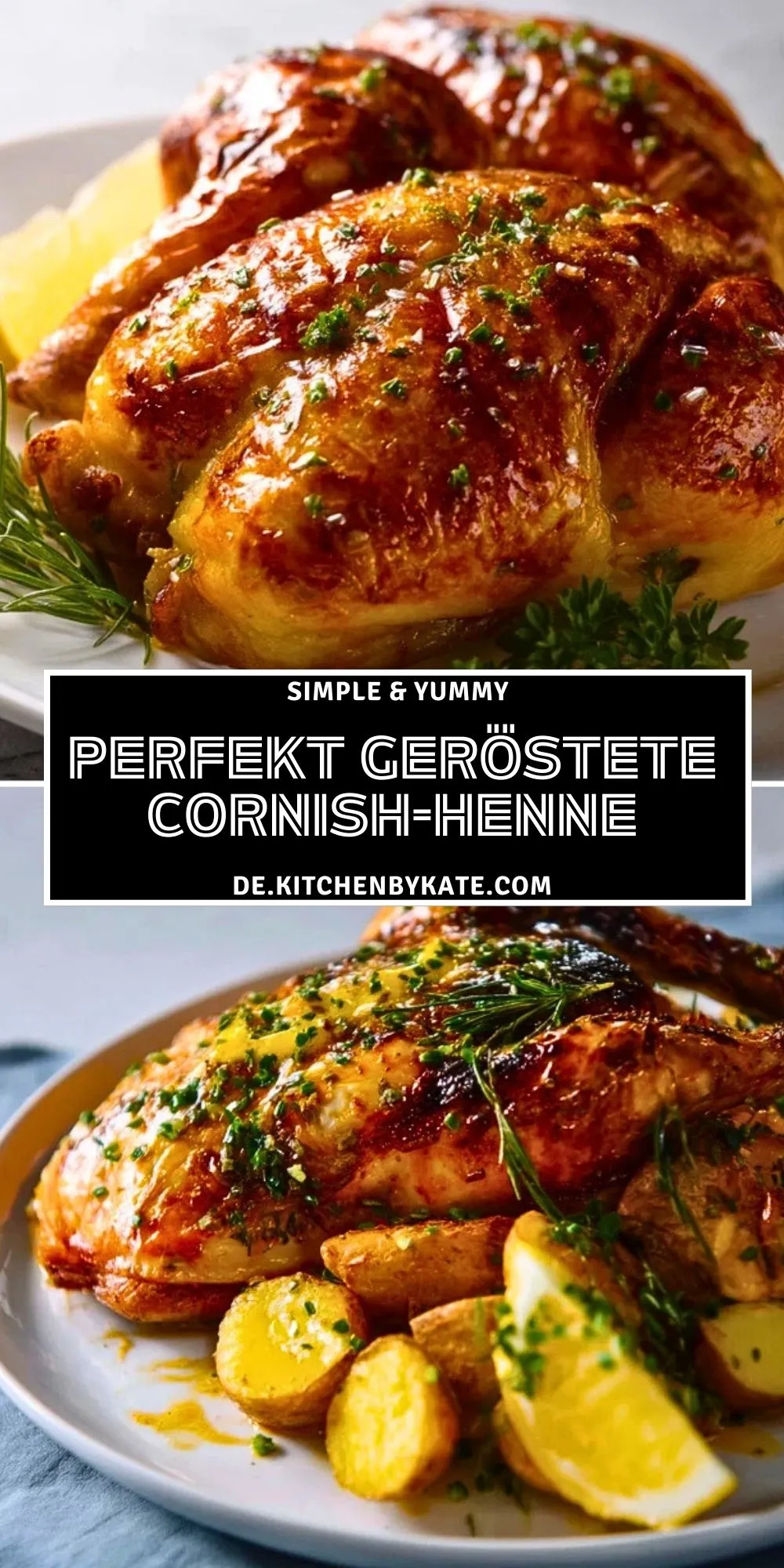 Saftige, würzige Cornish-Henne mit knuspriger Haut, aromatischen Kräutern und gebratenem Maiskolben – ein Festessen, das ohne viel Aufwand gelingt. Ideal für besondere Anlässe oder den Sonntagsbraten.