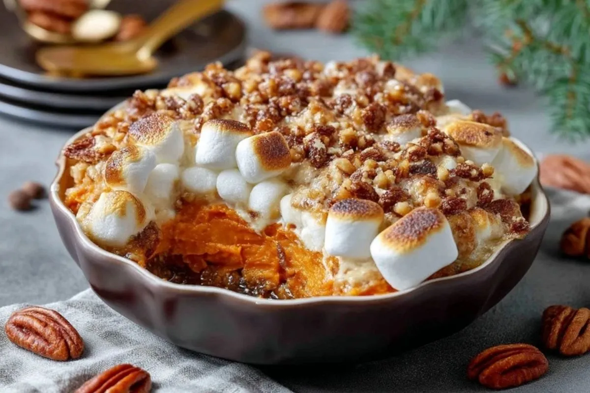 Süßkartoffelauflauf mit Pekannüssen und Marshmallows
