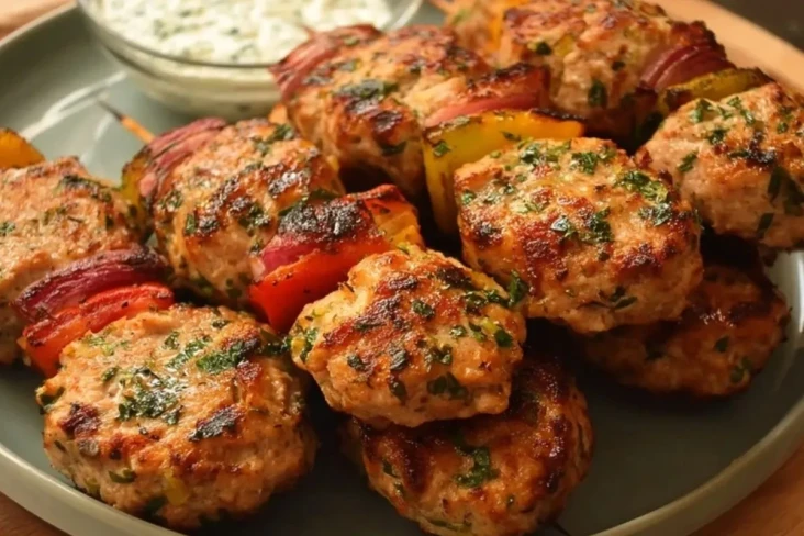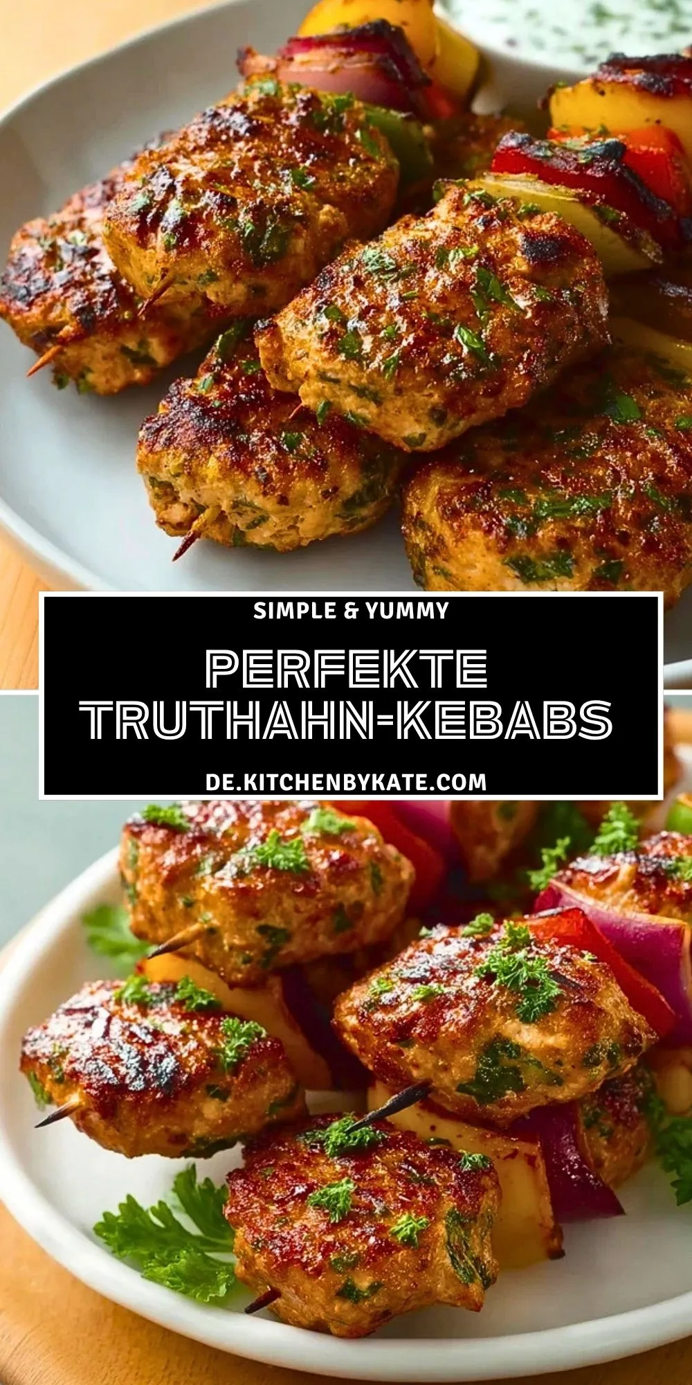 Perfekte Truthahn-Kebabs schmecken frisch vom Grill am besten, wenn sie noch heiß und saftig sind. Du kannst sie mit Joghurt-Dip, Knoblauchsoße, Couscous, Reis, Ofenkartoffeln oder einem gemischten Salat servieren. Für ein sommerliches Buffet passen auch Fladenbrot, Hummus und gegrilltes Gemüse hervorragend dazu.