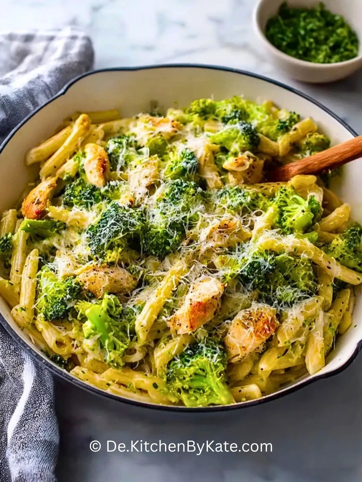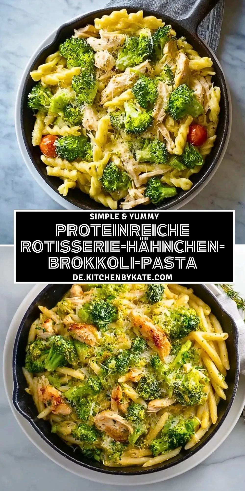 Keywords: proteinreiche Rotisserie-Hähnchen-Brokkoli-Pasta, Hähnchenpasta, Brokkoli Pasta, cremige Pasta, schnelle Familienküche