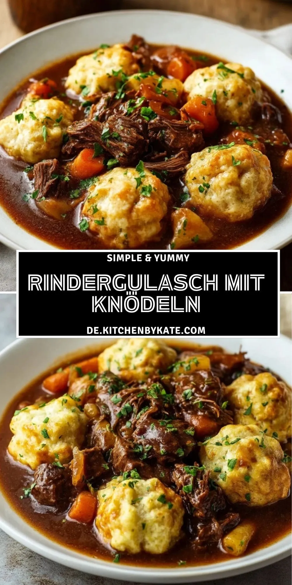 Rindergulasch mit Knödeln ist ein herzhaftes, wärmendes Hauptgericht mit zart geschmortem Rindfleisch, aromatischem Gemüse und lockeren Knödeln. Die kräftige Sauce und die klassische Kombination machen dieses Rezept ideal für Sonntage, Familienessen und gemütliche Abende.