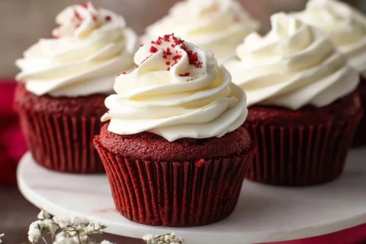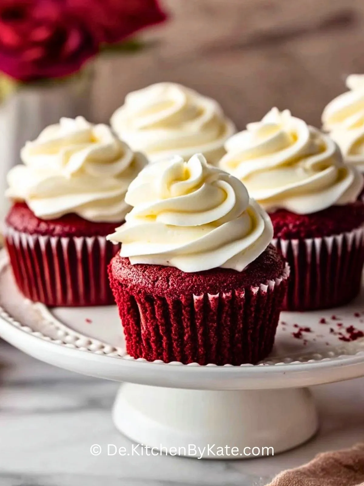 Rote Samt-Cupcakes sind der perfekte Mix aus saftigem Kakao-Teig, feiner Vanillenote und einer unwiderstehlich cremigen Frischkäsehaube. Ihre tiefrote Farbe macht sofort Eindruck, doch der wahre Reiz liegt im Geschmack: weich, leicht buttrig und wunderbar ausgewogen zwischen süß und sanft säuerlich.