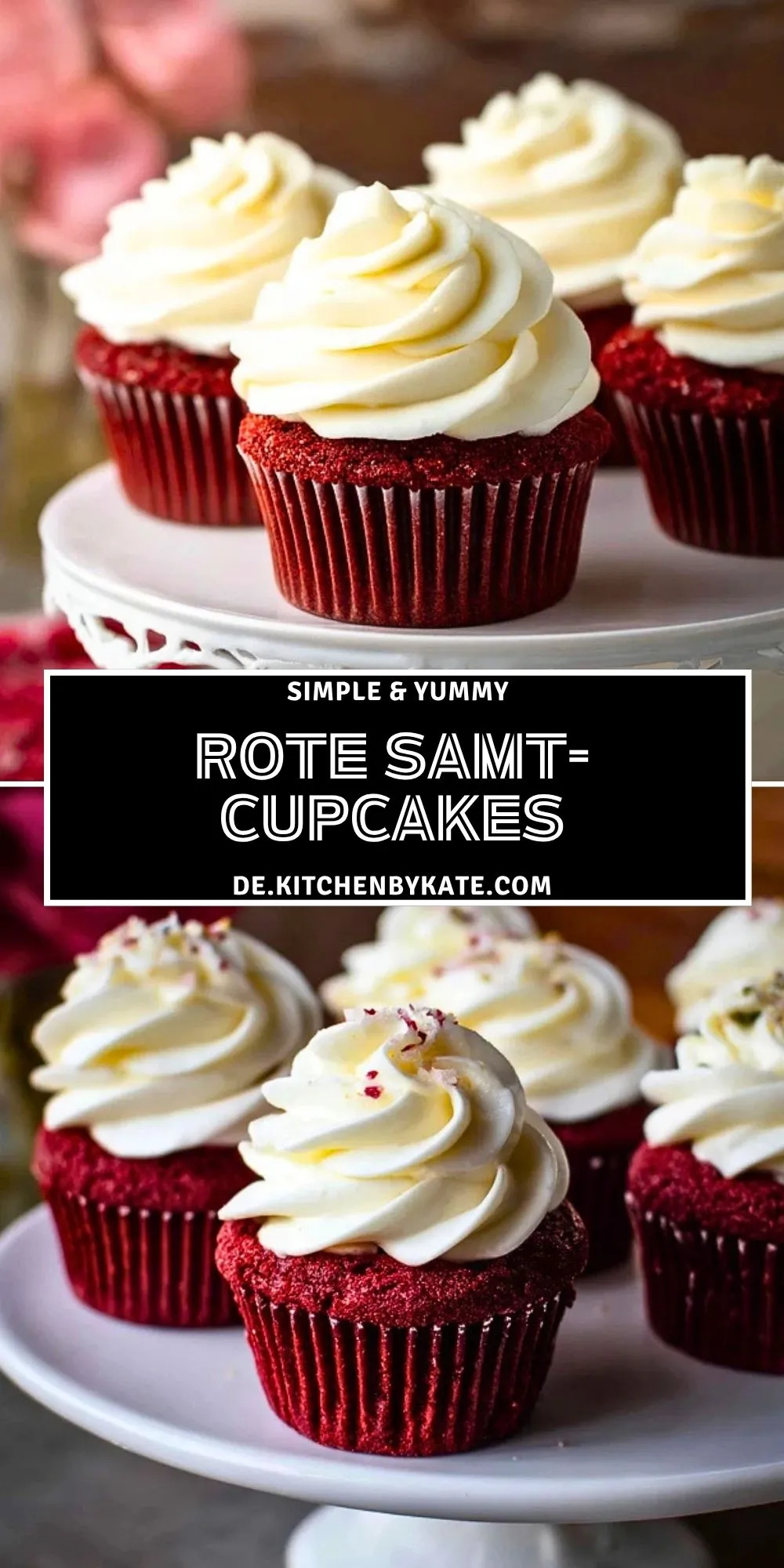 Keywords: Rote Samt-Cupcakes, Red Velvet Cupcakes, Cupcakes mit Frischkäse-Frosting, Dessert