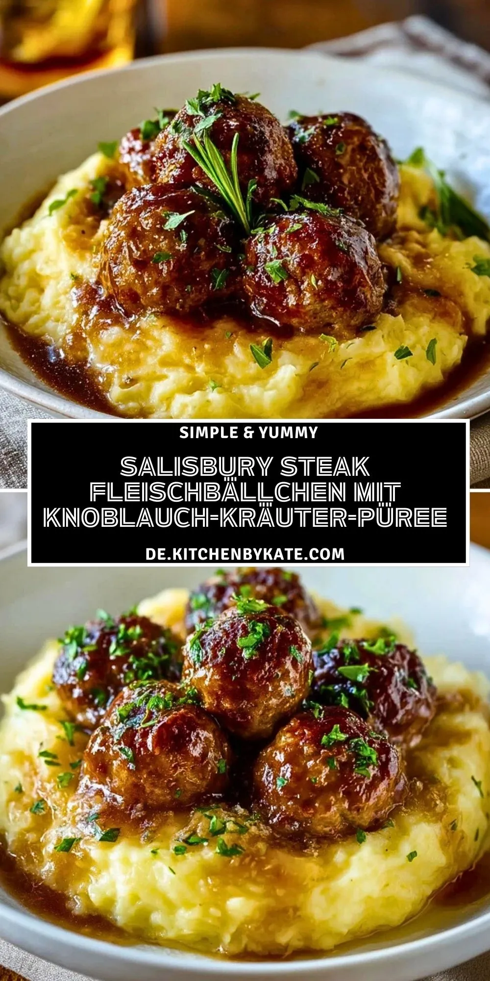 Salisbury Steak Fleischbällchen mit Knoblauch-Kräuter-Püree