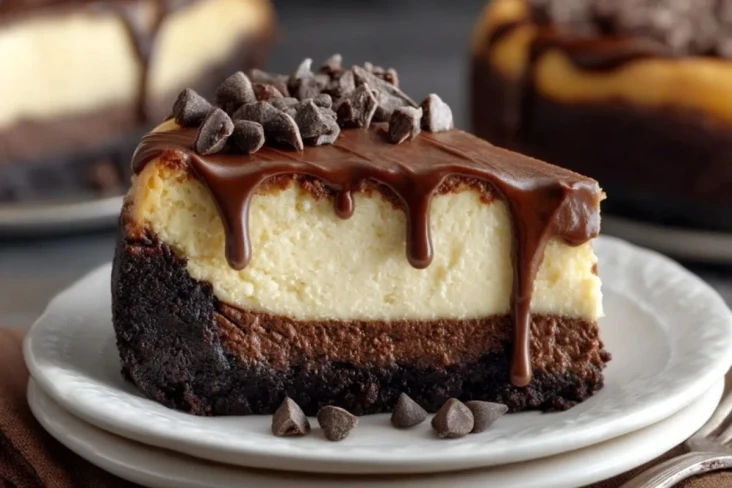 Ein besonders cremiger Schokoladen-Brownie-Cheesecake mit saftigem Brownieboden, samtiger Frischkäsefüllung und glänzender Schokoladenglasur. Perfekt für besondere Anlässe, zum Vorbereiten und für alle, die intensiven Schokoladengeschmack mit klassischer Cheesecake-Creme lieben.