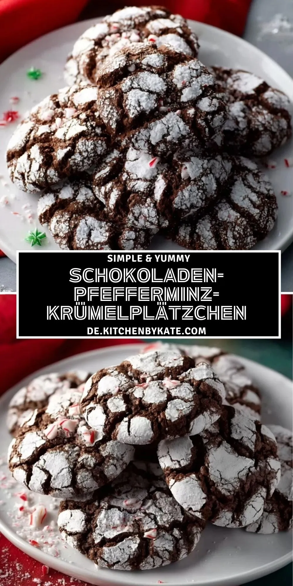 Herrlich weiche Schokoladen-Pfefferminz-Krümelplätzchen mit knuspriger Kruste, winterlichem Crinkle-Look und knackigen Pfefferminzstückchen. Perfekt für die Adventszeit oder als festliche Überraschung!