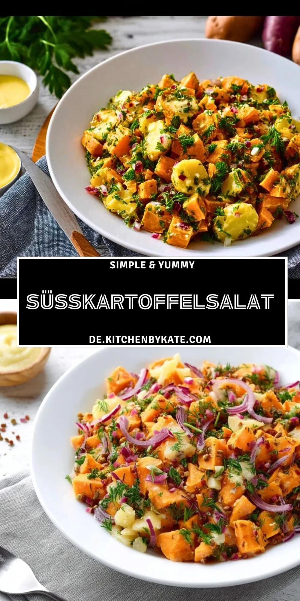 Ob lauwarm oder kalt serviert, Süßkartoffelsalat begeistert durch seine Vielseitigkeit. Die natürlichen Süße der Süßkartoffeln harmoniert perfekt mit pikanten Noten, frischen Kräutern und einem Hauch Säure im Dressing. Die Zutaten lassen sich beliebig anpassen, sodass der Salat vegetarisch, vegan oder sogar mit kleinen Extras wie Feta oder geröstetem Speck zubereitet werden kann.