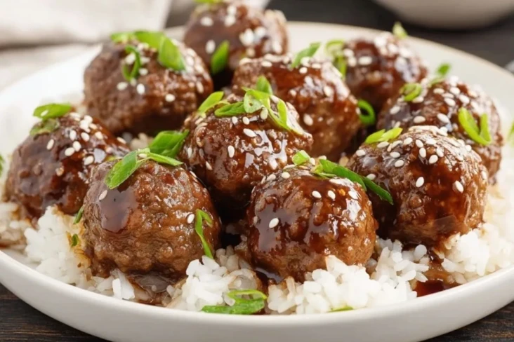 Diese Teriyaki-Fleischbällchen sind saftig, würzig und mit einer herrlich glänzenden Sauce überzogen. Serviert mit Reis und garniert mit Frühlingszwiebeln und Sesam entsteht ein einfaches, familienfreundliches Gericht, das schnell zubereitet ist und trotzdem nach etwas Besonderem schmeckt.