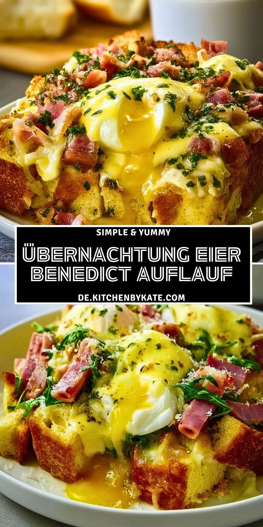 Keywords: Übernachtung Eier Benedict Auflauf, Brunch Auflauf, Eierauflauf, Frühstücksauflauf, Sauce hollandaise