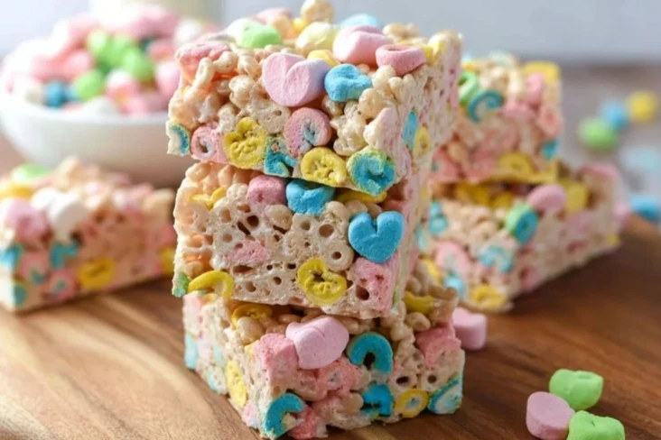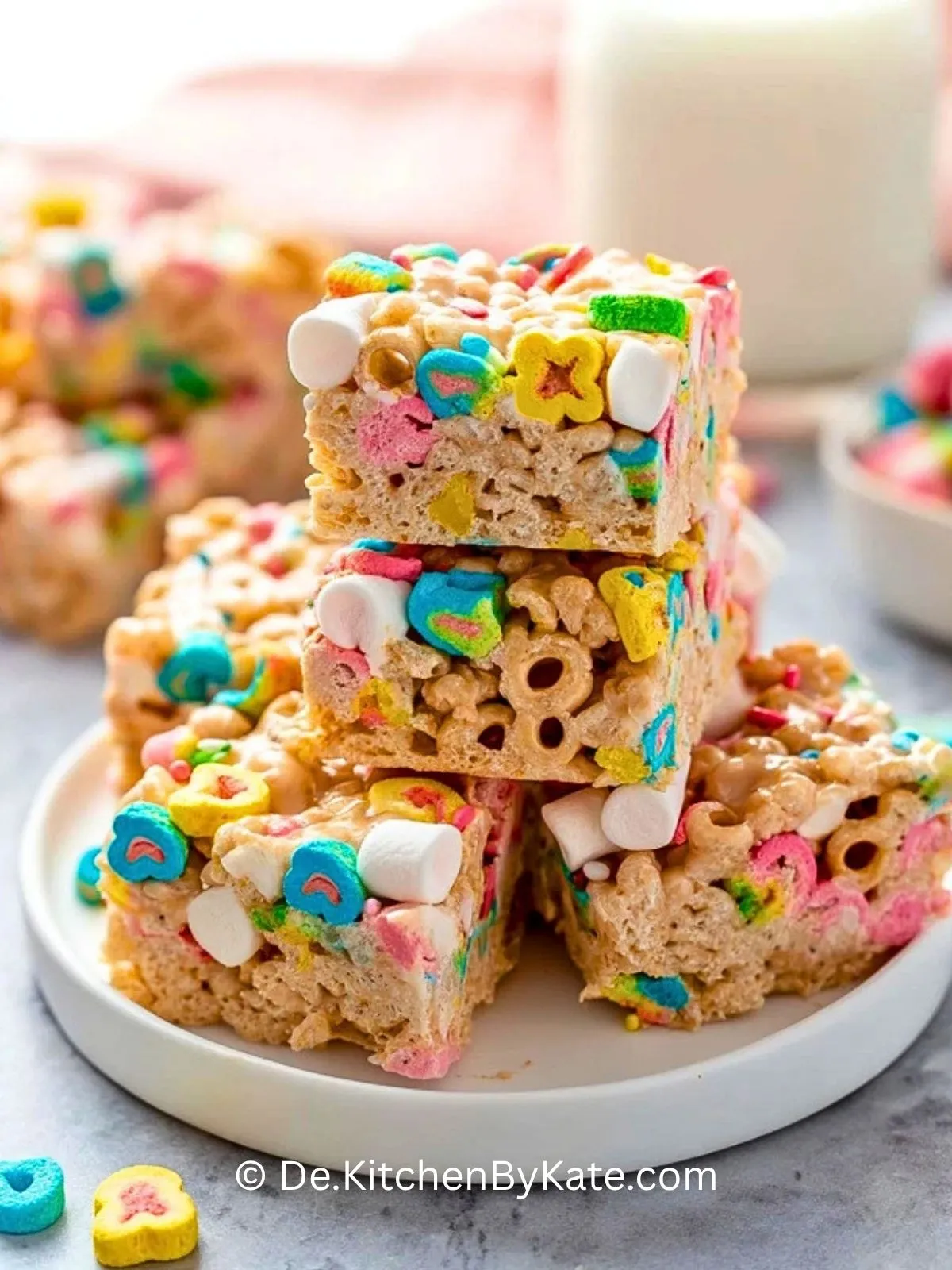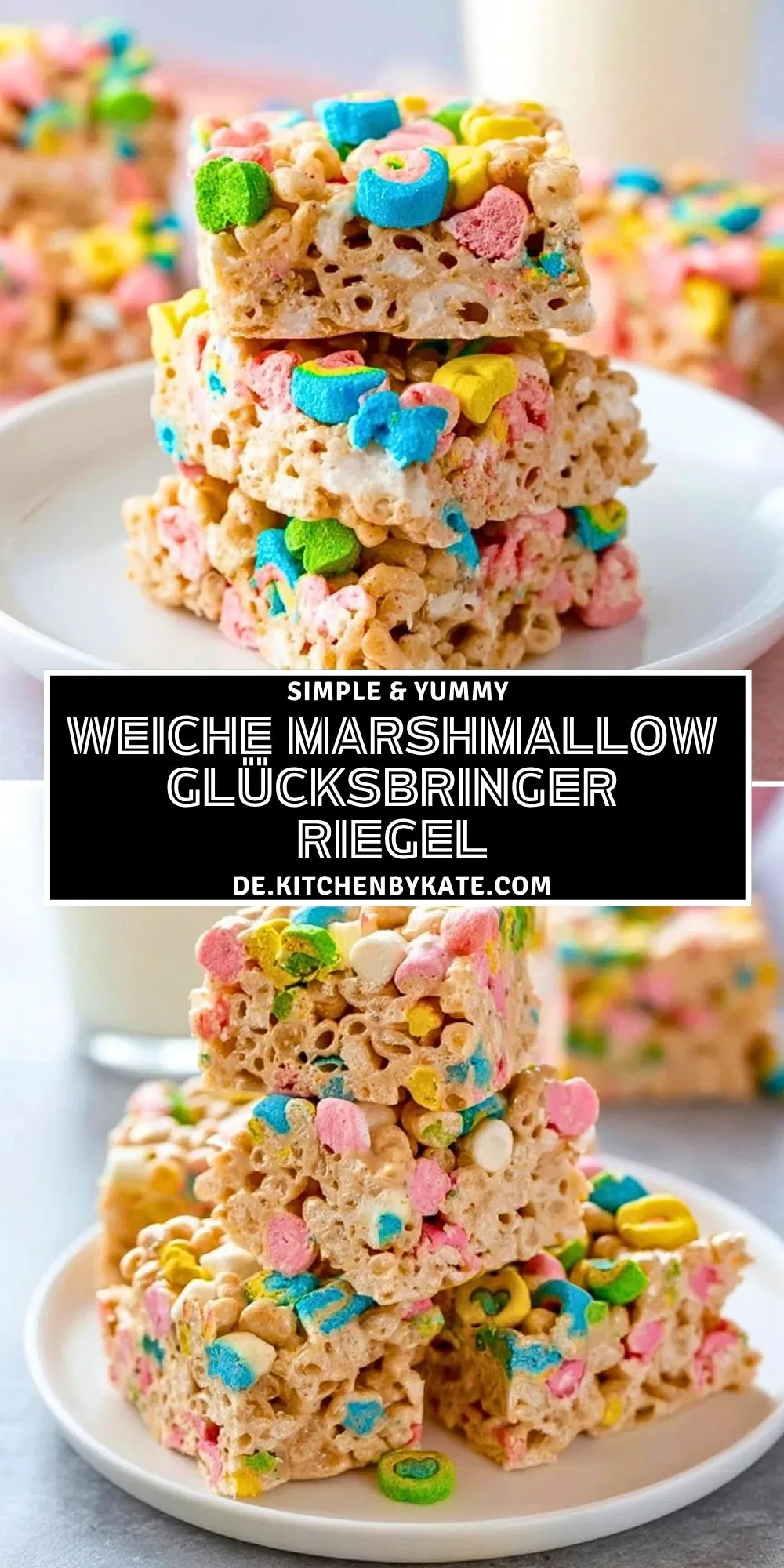 Diese weichen Marshmallow Glücksbringer Riegel sind bunt, süß und herrlich unkompliziert. Knusprige Getreideringe, zart schmelzende Marshmallows und ein Hauch Butter verbinden sich zu kleinen Riegeln, die nach Kindergeburtstag, gemütlichem Nachmittag und spontaner Naschlust schmecken.