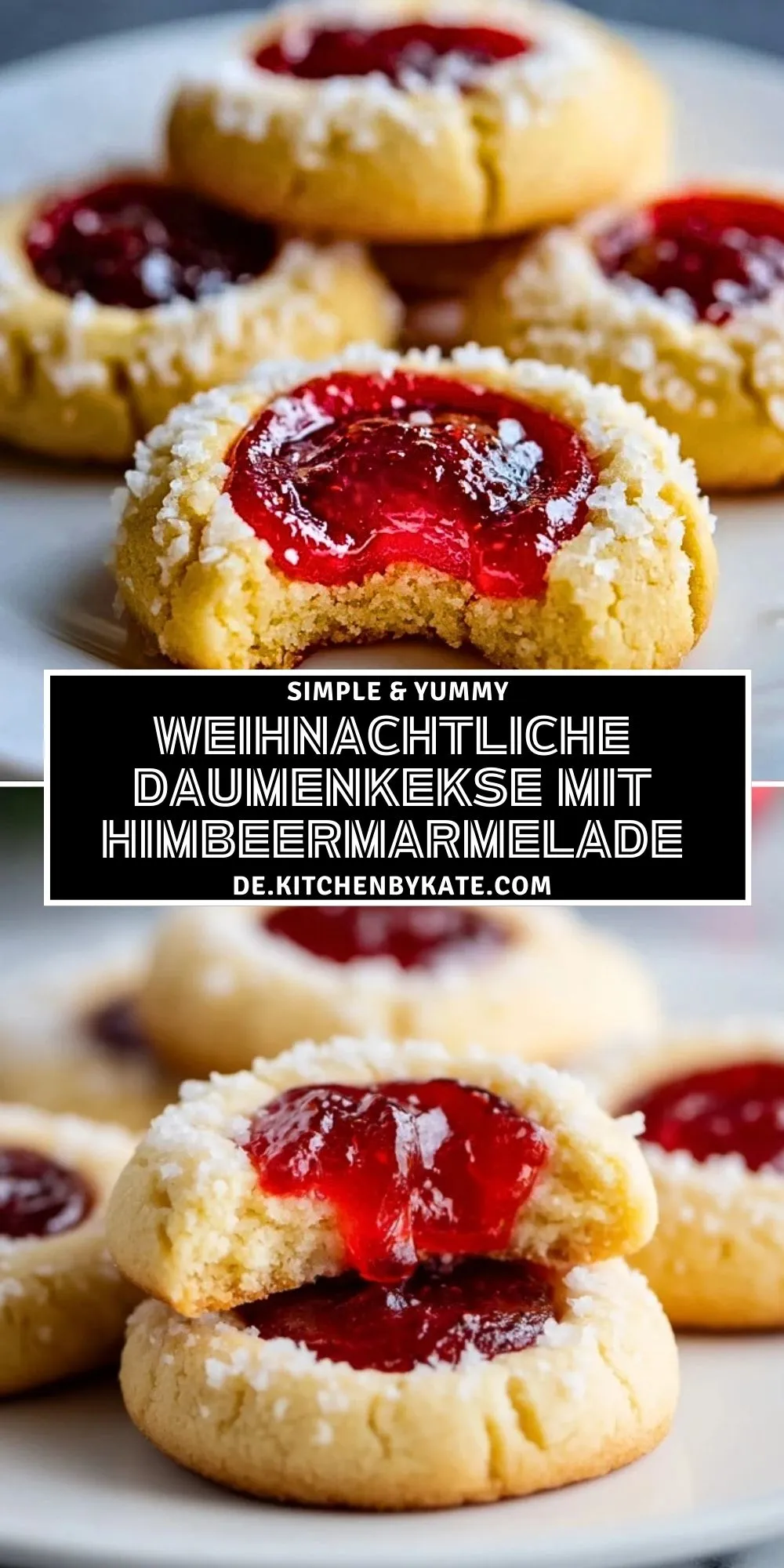Zarte, buttrige Plätzchen mit einer fruchtigen Himbeermarmeladen-Füllung – diese Daumenkekse sind ein echter Klassiker auf dem Weihnachtsteller. Sie überzeugen durch ihre mürbe Textur, einen aromatischen Geschmack und lassen sich wunderbar vorbereiten sowie verschenken.