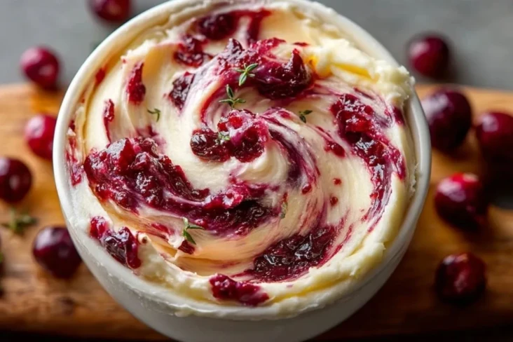 4. Die Preiselbeeren locker unter die Butter heben, damit eine schöne Marmorierung entsteht.