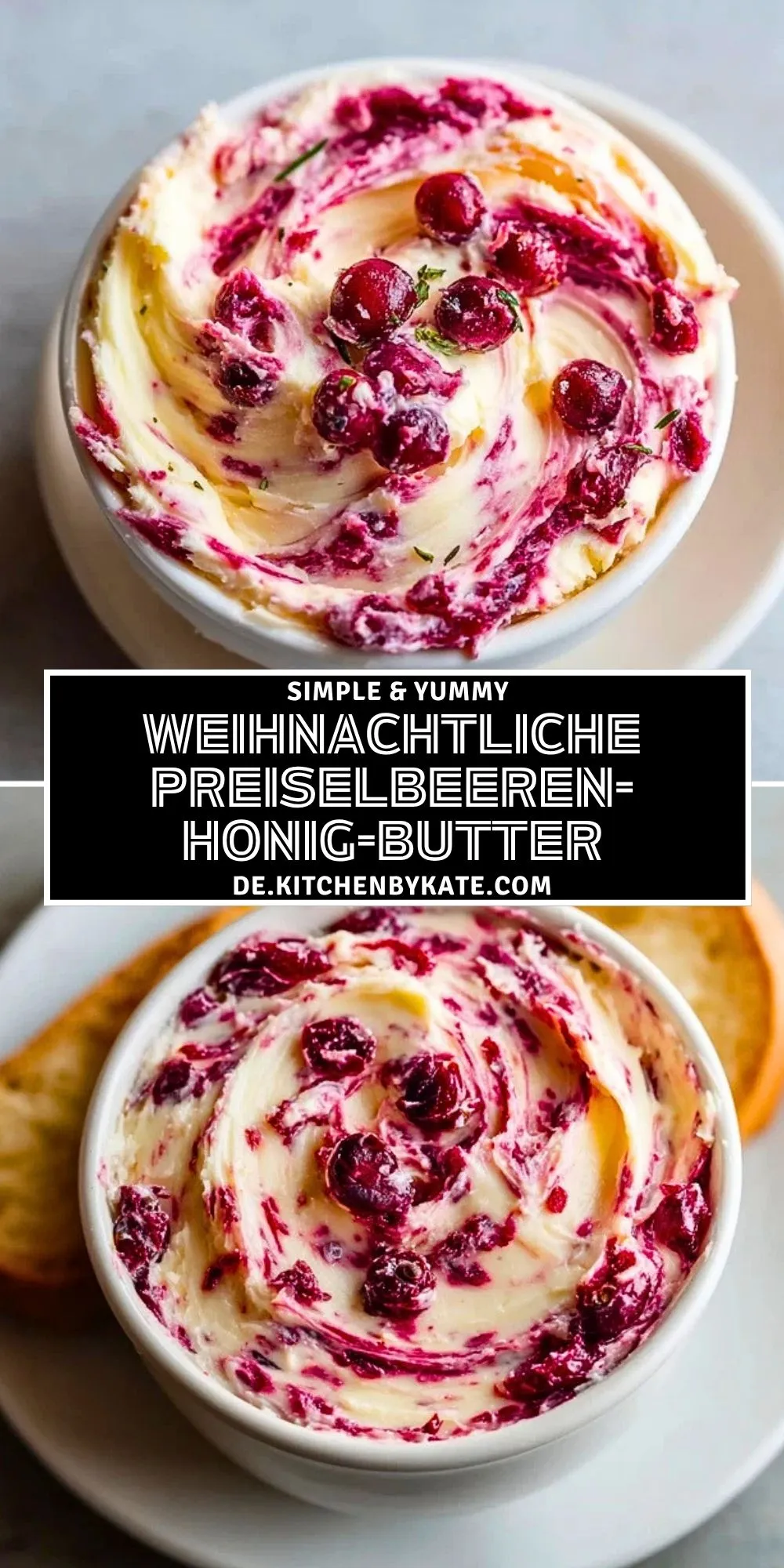 Keywords: weihnachtliche Butter, Preiselbeeren-Honig-Butter, Weihnachtsbrunch, Brotaufstrich, Winterrezept