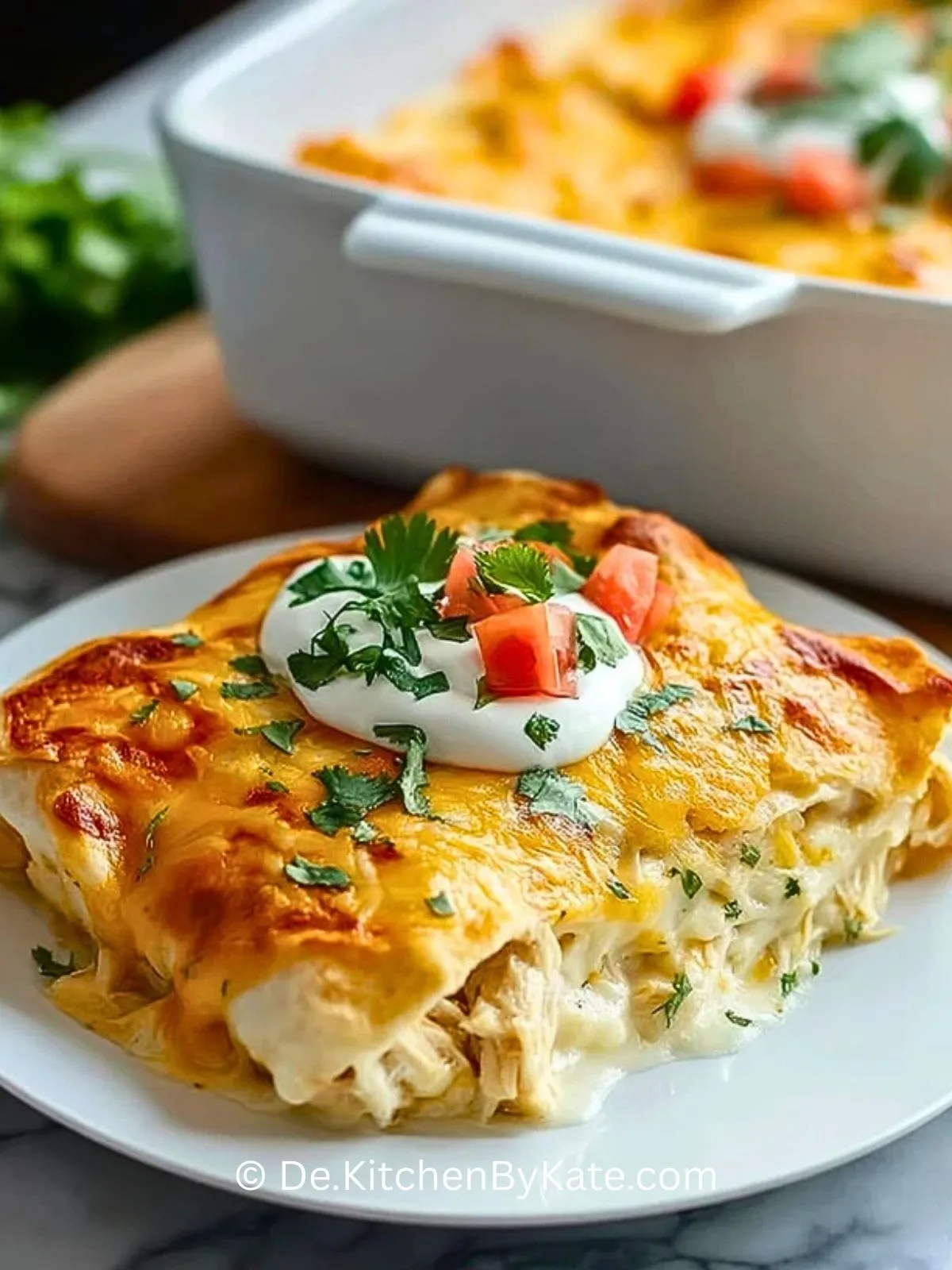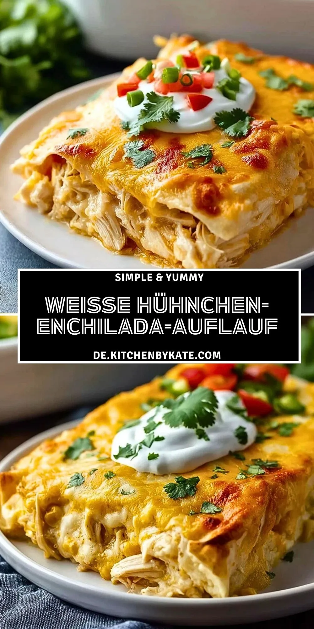 Cremiger, käsiger Weiße Hühnchen-Enchilada-Auflauf: Zarte Hähnchenbrust, umhüllt von weichen Tortillas, gebettet in eine würzige, milde weiße Sauce und überbacken mit goldbraunem Käse. Das perfekte Familiengericht, das einfach vorzubereiten ist und garantiert allen schmeckt!