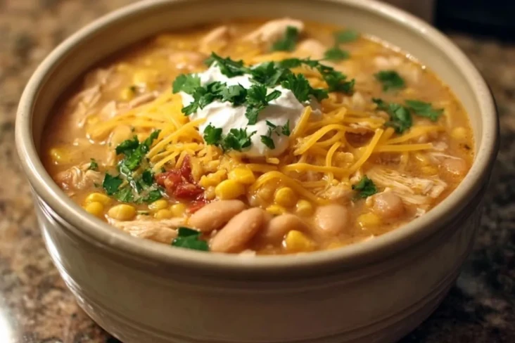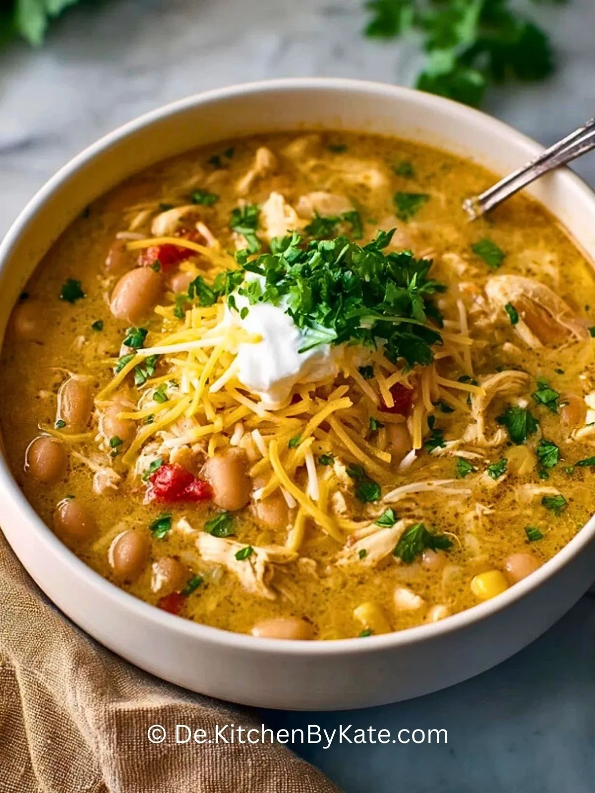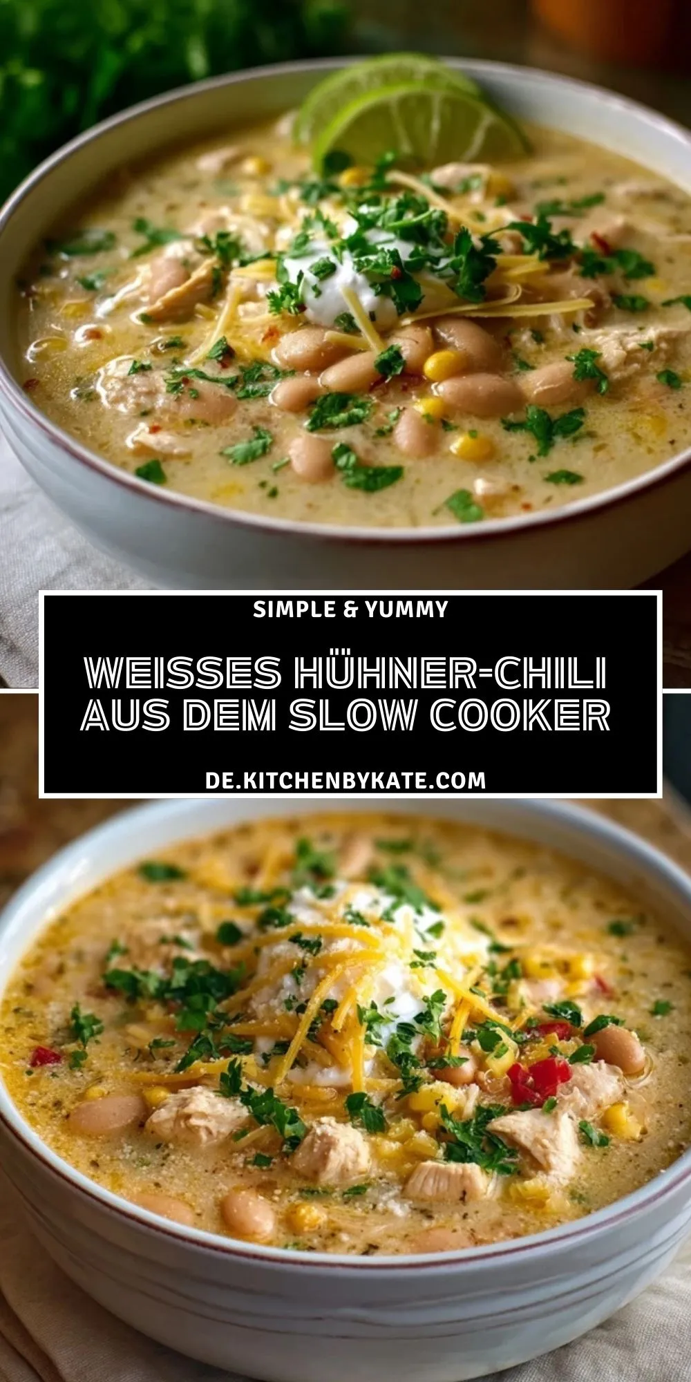 Dieses weiße Hühner-Chili aus dem Slow Cooker ist cremig, würzig und voller Geschmack. Zartes Hähnchen, weiße Bohnen und Mais machen dieses Gericht zu einem echten Familienliebling. Perfekt für kalte Tage, super vorzubereiten und ideal zum Einfrieren!