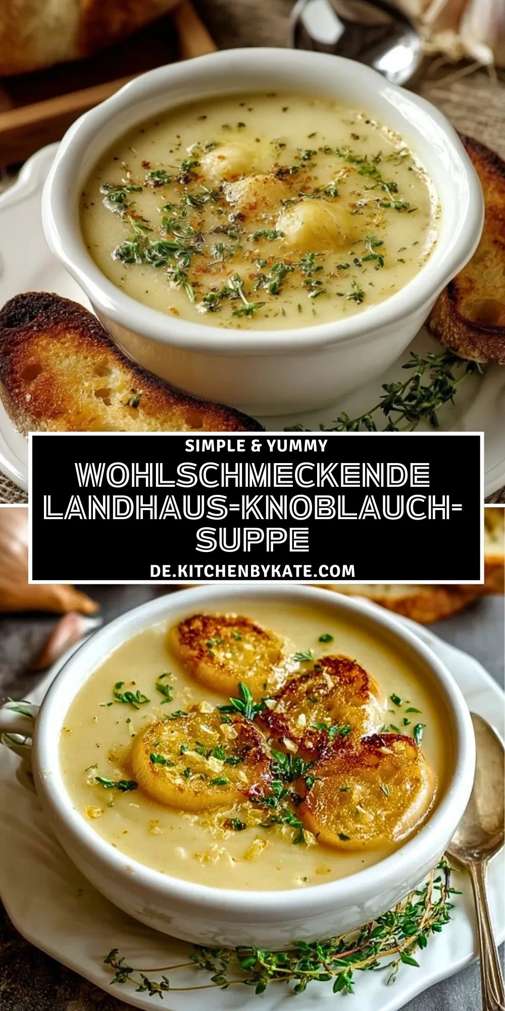 Diese Landhaus-Knoblauch-Suppe ist wunderbar cremig, aromatisch und überraschend mild – perfekt für kalte Tage und gemütliche Abende. Zarte Kartoffeln, sanft gegarter Knoblauch und frische Kräuter verbinden sich zu einer wohltuenden Suppe, die sich sowohl als Vorspeise als auch als Hauptgericht eignet.