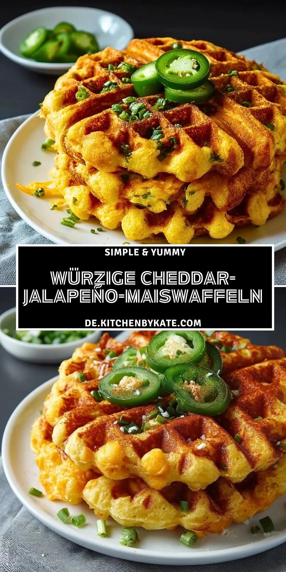 Keywords: Würzige Cheddar-Jalapeño-Maiswaffeln, Maiswaffeln, herzhafte Waffeln, Cheddar Waffeln, Jalapeño Rezept