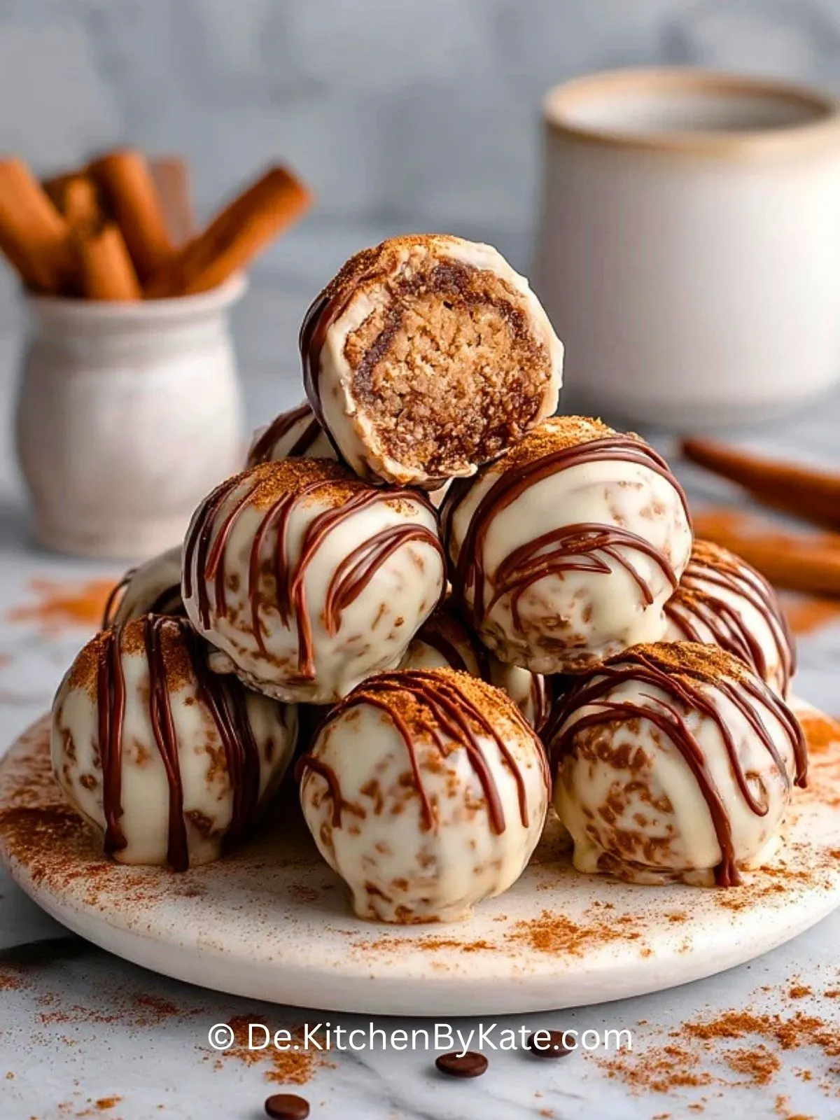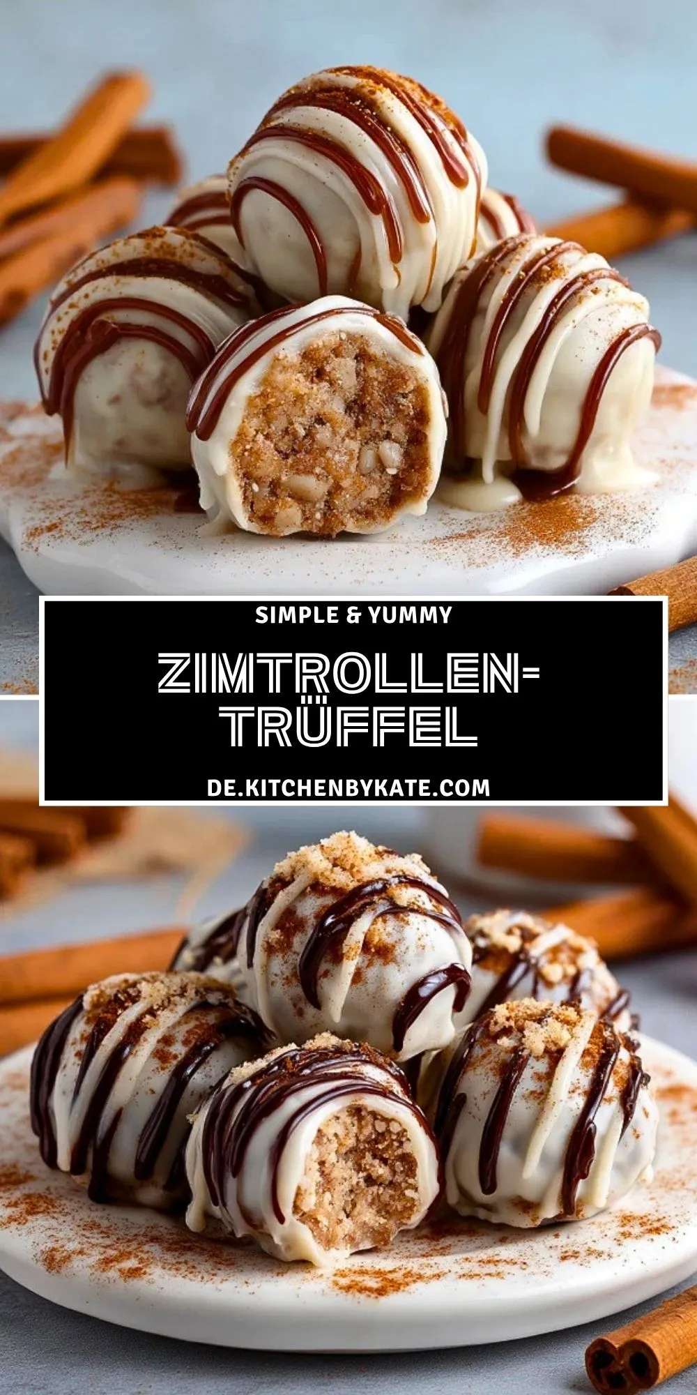 Zimtrollen-Trüffel verbinden den warmen, vertrauten Geschmack klassischer Zimtschnecken mit der zarten Eleganz eines kleinen Konfekts. Außen sorgt eine helle Schokoladenhülle für einen feinen Biss, innen wartet eine weiche, zimtige Füllung mit buttriger Süße, die sofort an frisch gebackene Zimtrollen erinnert. Gerade für festliche Platten, Kaffeerunden oder als selbst gemachtes Mitbringsel sind diese Trüffel ein echter Blickfang.
