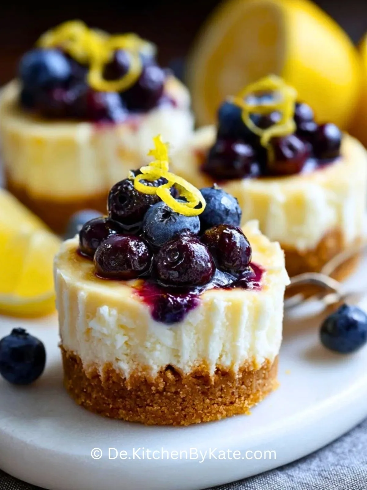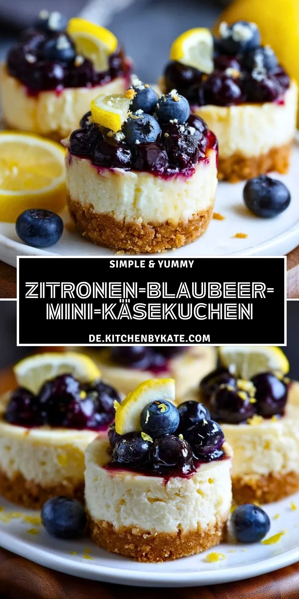 Keywords: Zitronen-Blaubeer-Mini-Käsekuchen, Mini-Käsekuchen, Käsekuchen mit Blaubeeren, Zitronen Dessert, Frischkäse Dessert